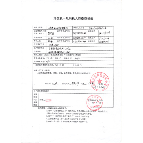 • 增值稅一般納稅人登記表